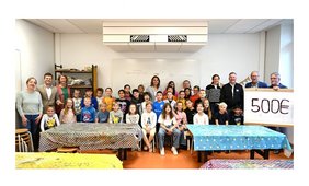 Bei einer symbolischen Geldübergabe im Werkraum der Grundschule bedankten sich die Schulleiterin Kathrin Sellmeier sowie der Vorsitzende des Fördervereins der Grundschule Lotte Mark Semper über den zur Verfügung gestellten Betrag.